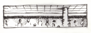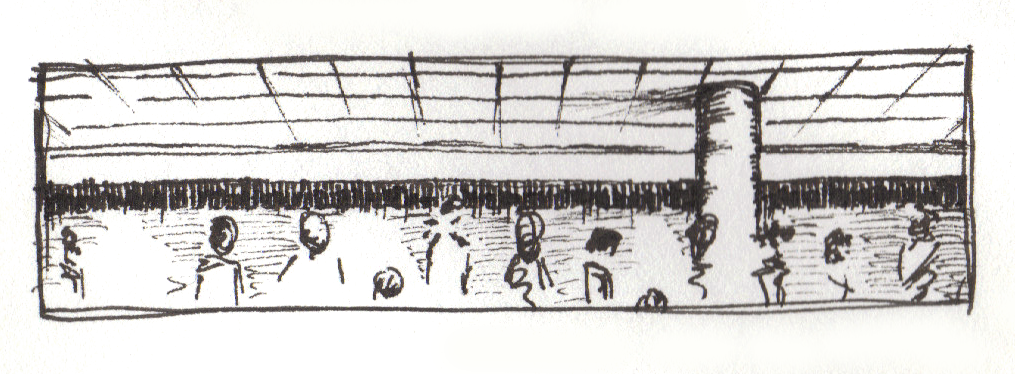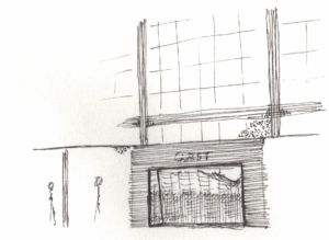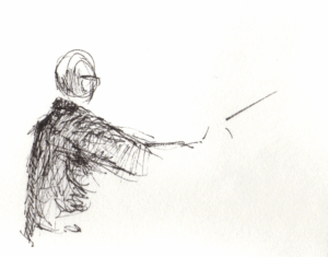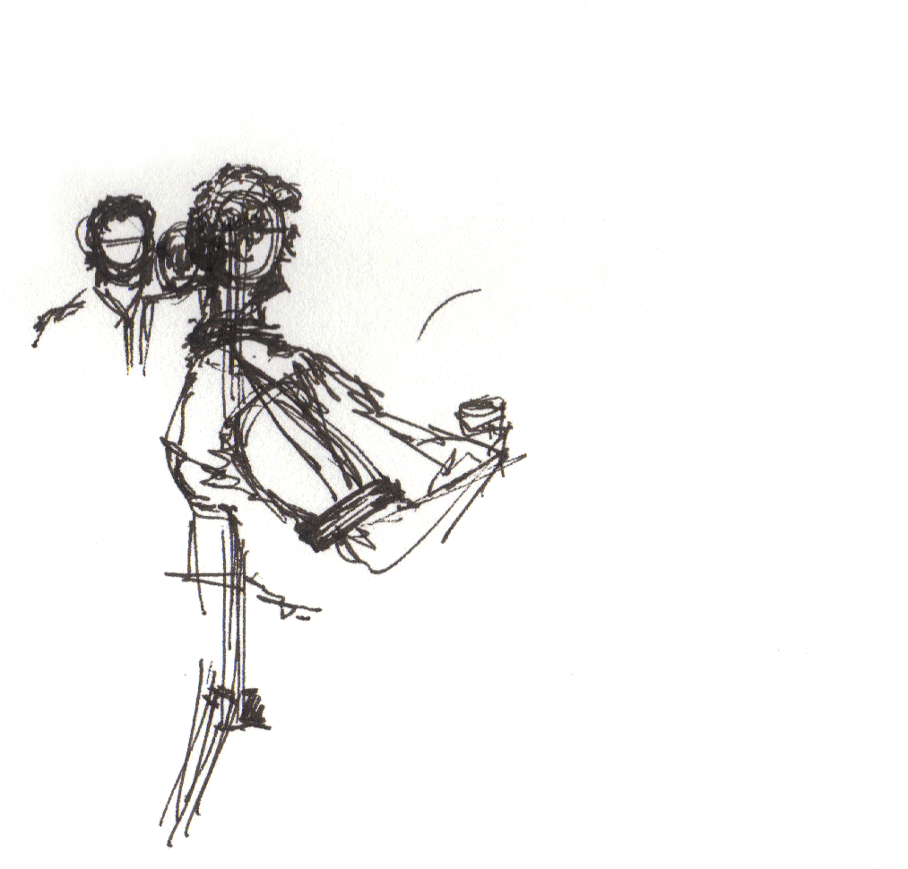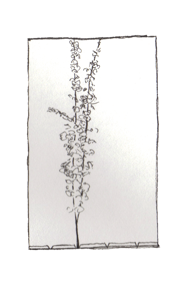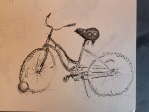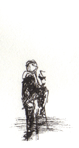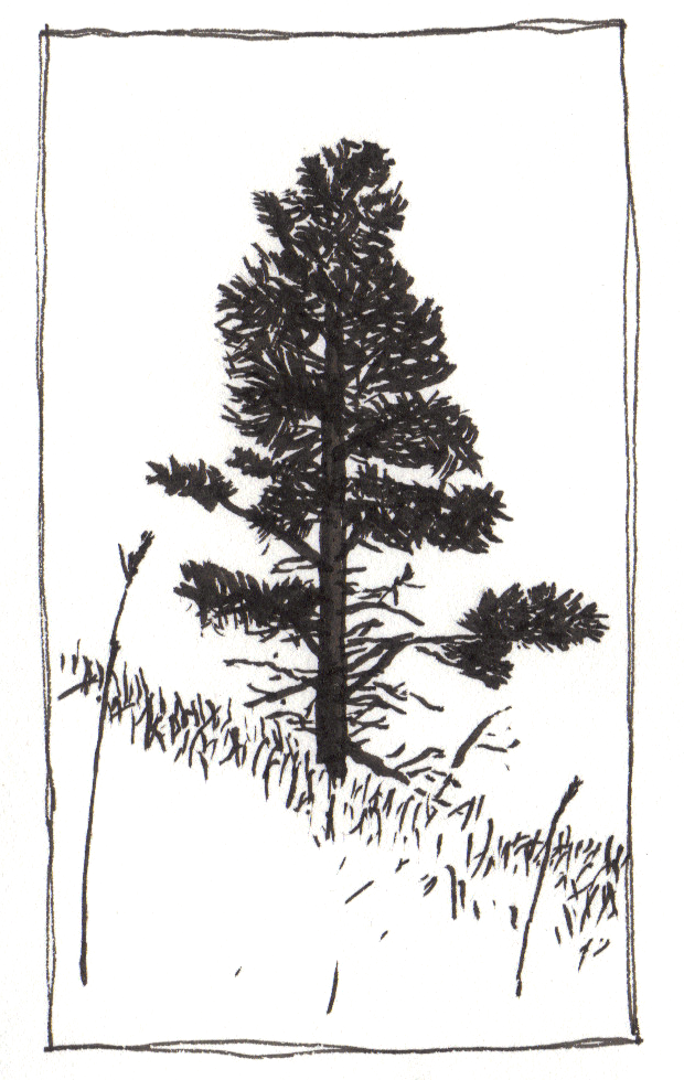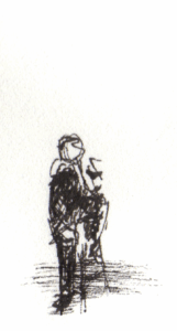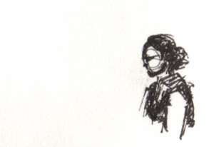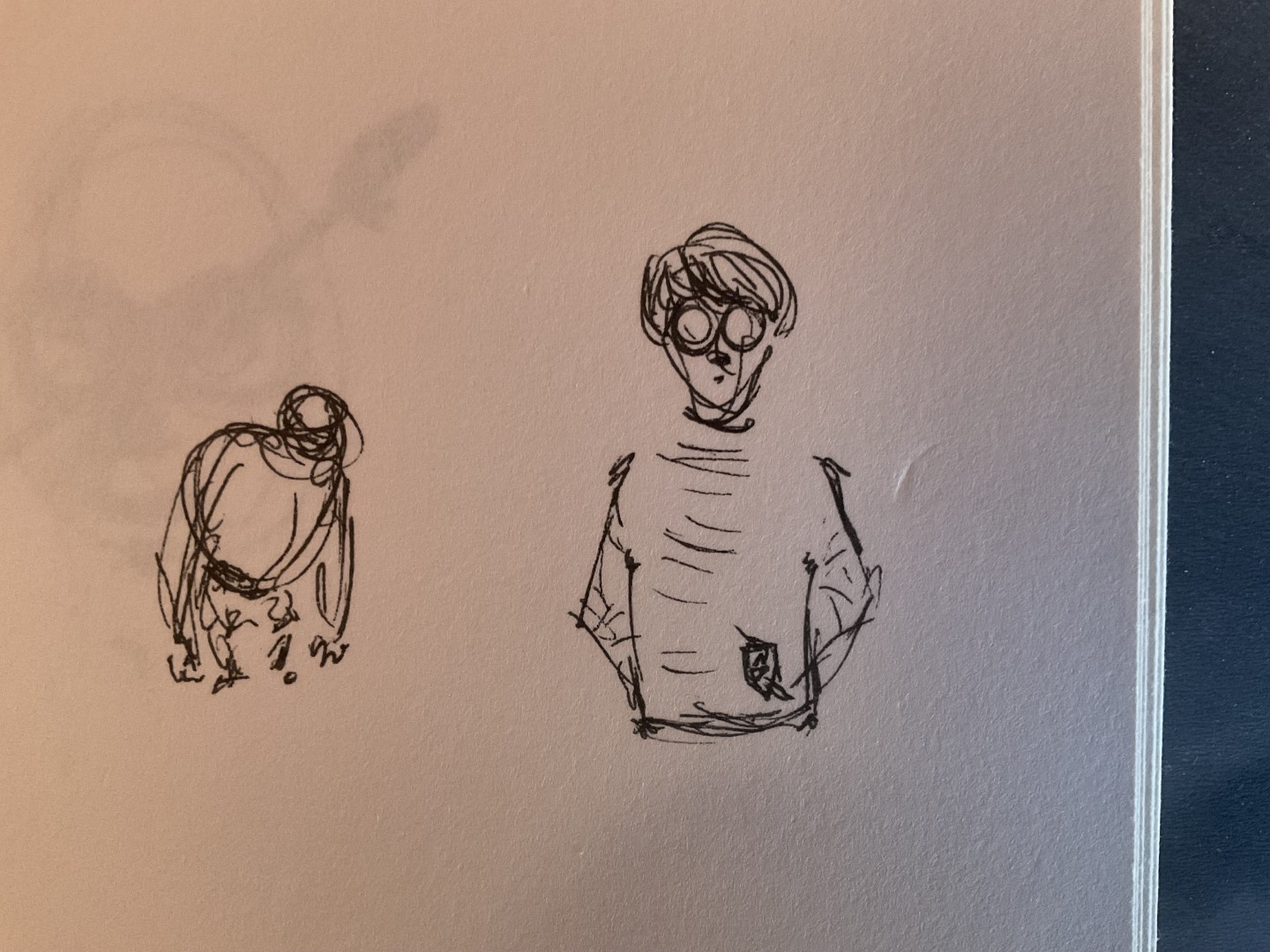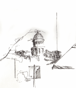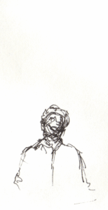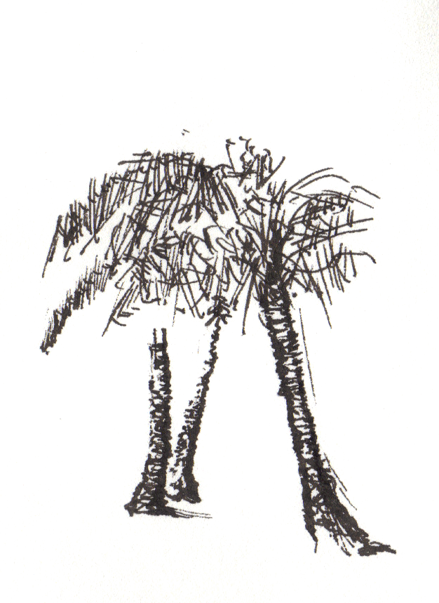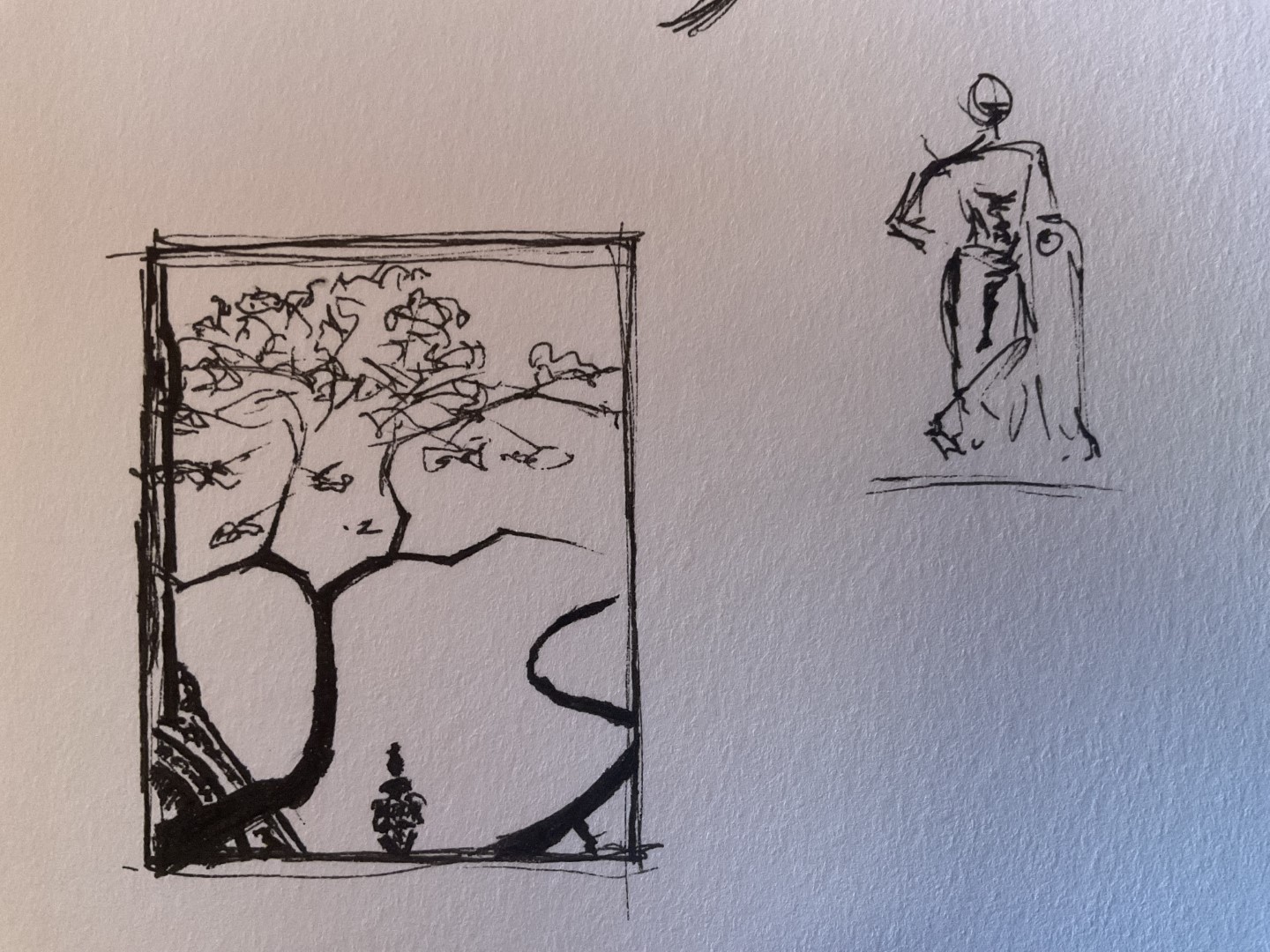 My preferred medium is black ink and paper. I come back to Micron, Rotring, Sharpie gel, Staedtler, and most enjoy architecture, landscapes, and figures — especially at the airport — though I just draw what I’m looking at.