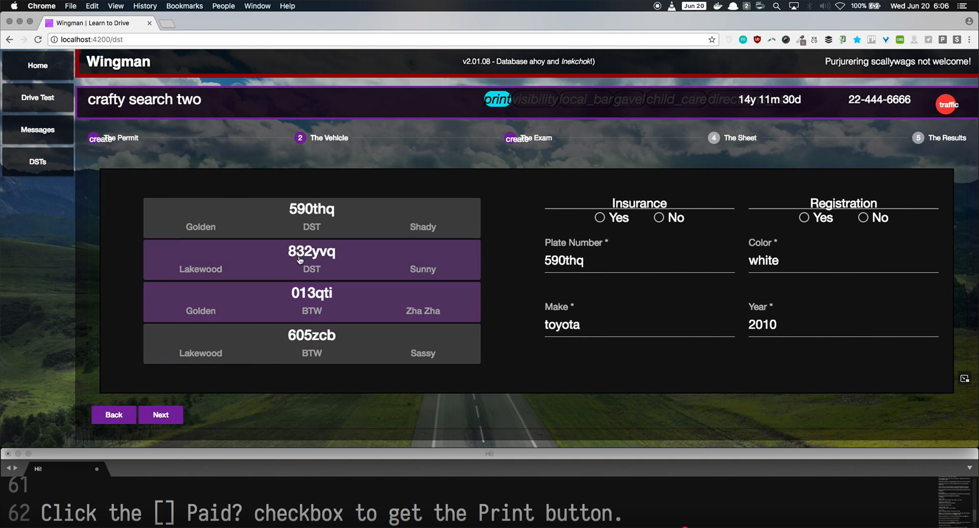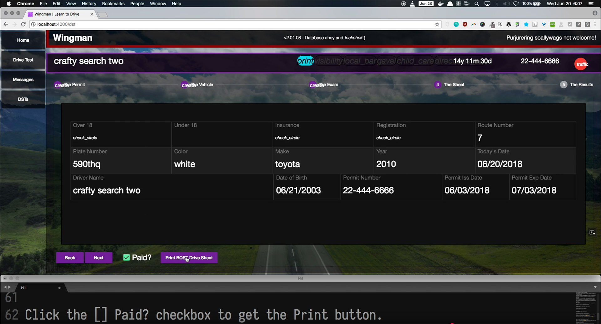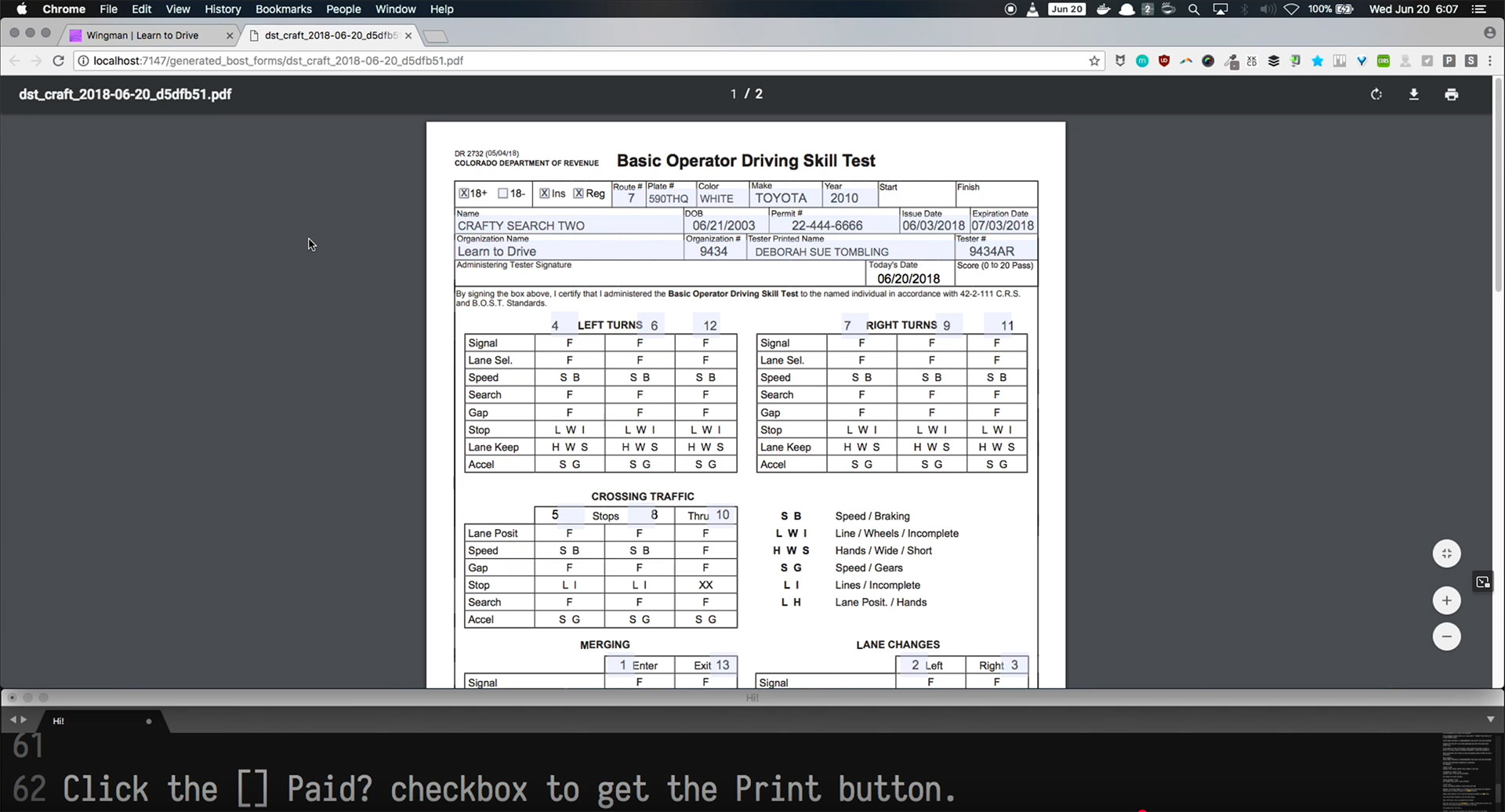 Elevator Pitch: Drive test compliance software for Colorado drive schools.