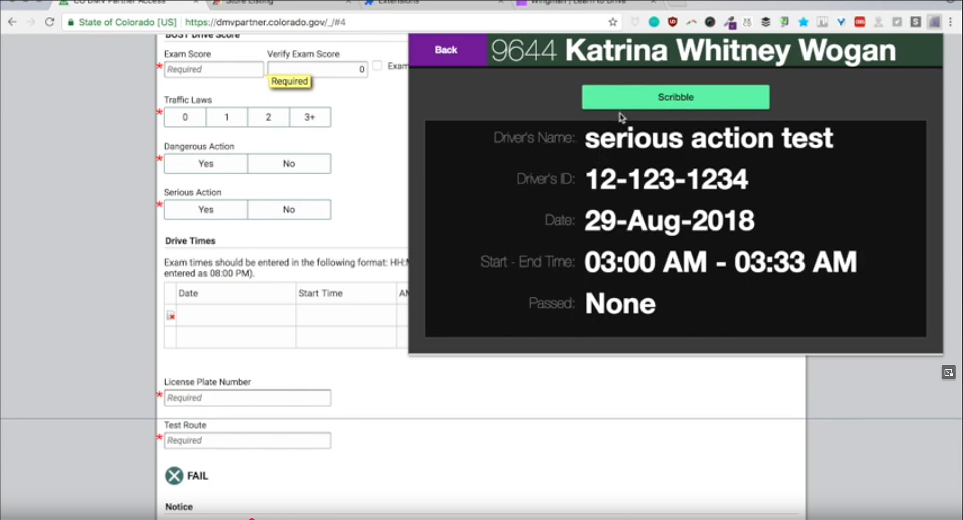 Tech: HTML/CSS/JS, SQLite, Browser Plugin, Screenreading + Automated data entry, Barcode Scanner integration (PDF417), PDF doc generation, Google Doc integration via API