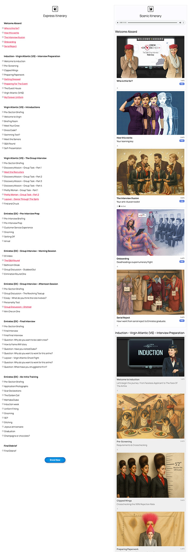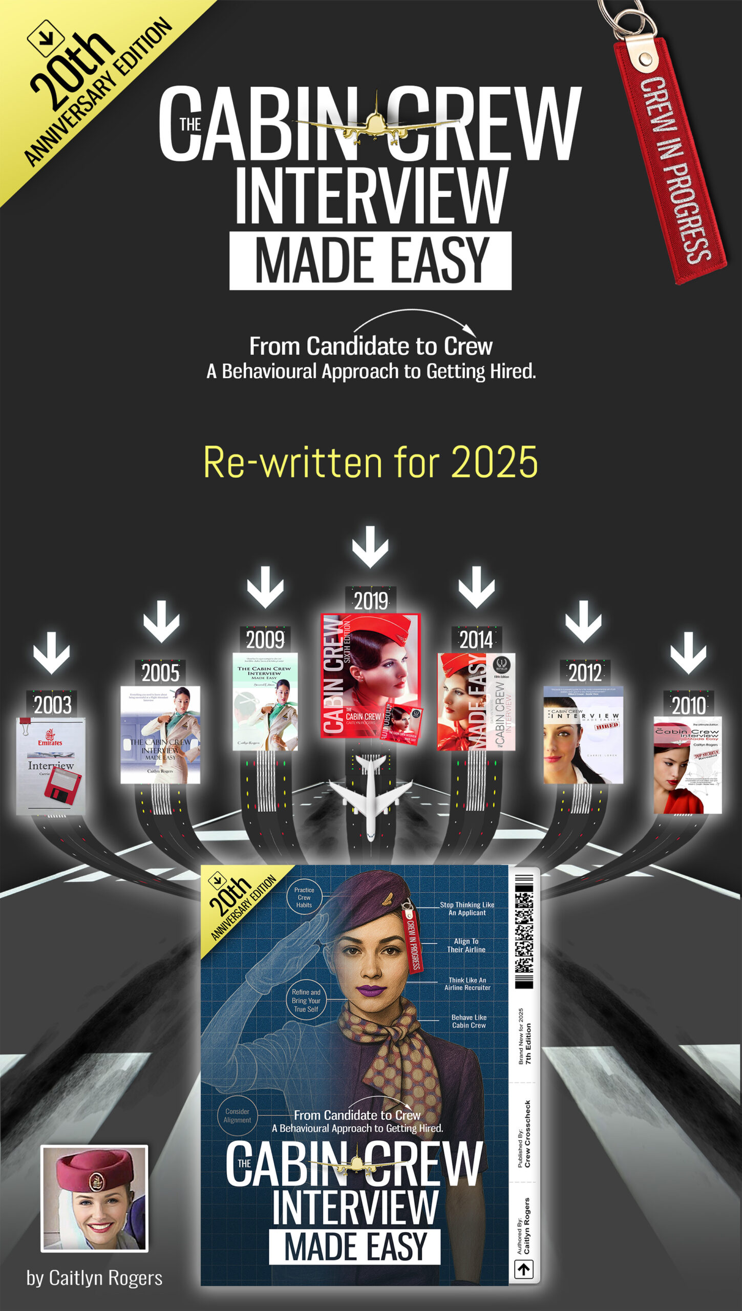 Elevator Pitch: “The Cabin Crew Interview Made Easy” (20th anniversary/7th edition) turned into a complete multimedia online course (LMS).