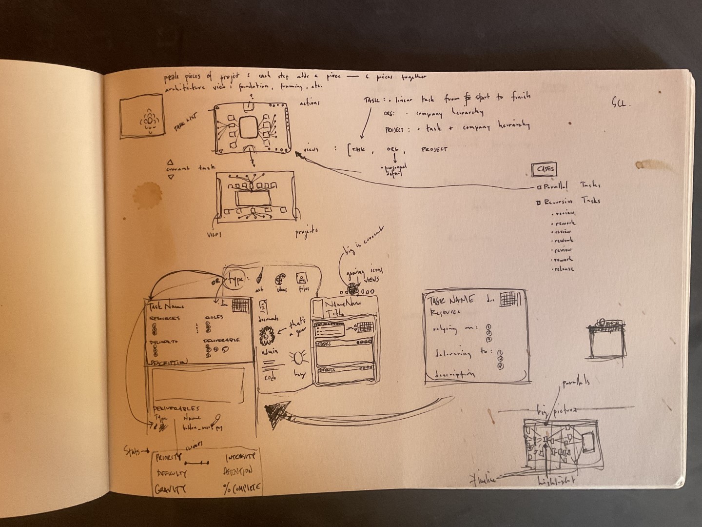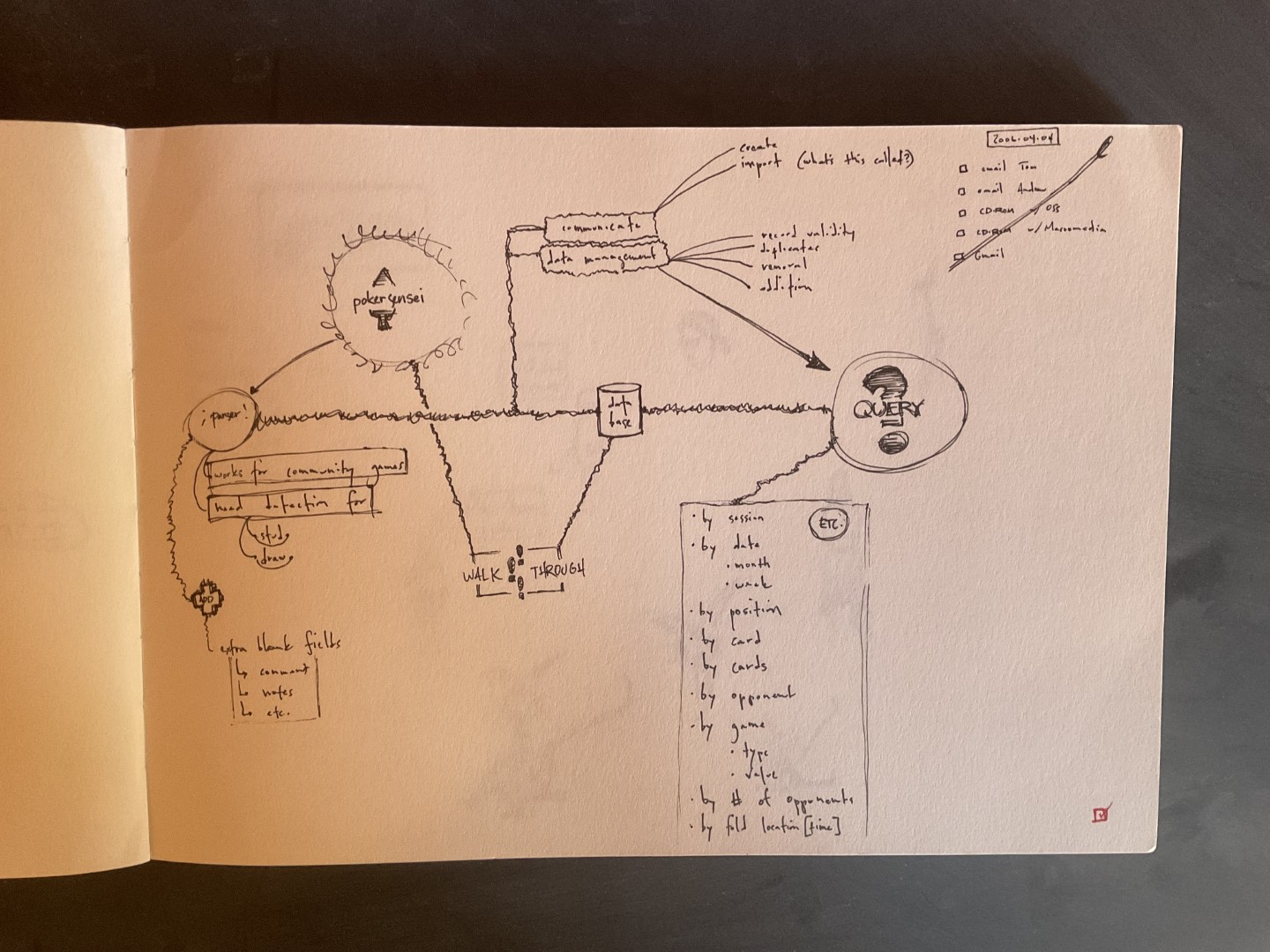 My design will start in a sketchbook or on note cards or a chalkboard/whiteboard with the goals of getting to the core of the goals, examining edge cases, and looking for patterns/standards.